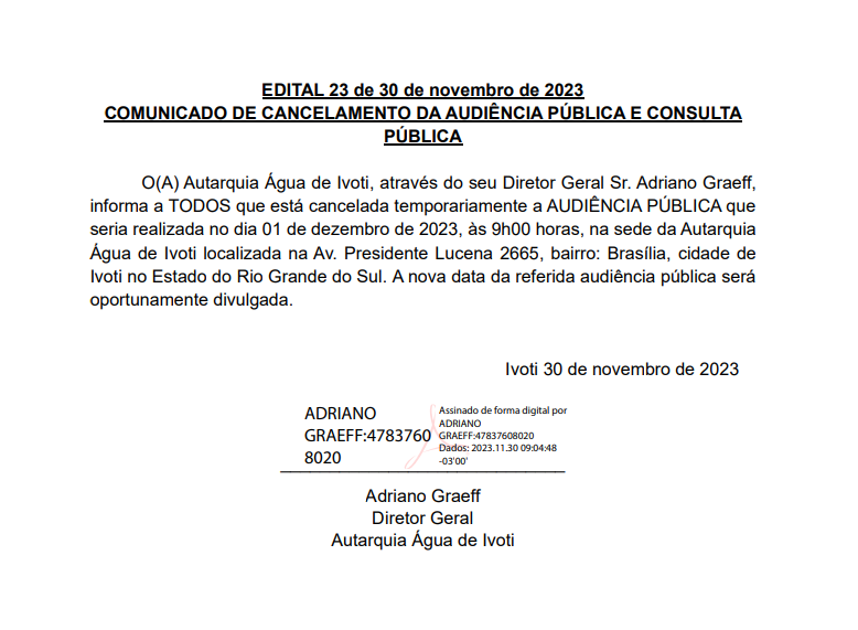 COMUNICADO DE CANCELAMENTO DA AUDIÊNCIA PÚBLICA E CONSULTA PÚBLICA